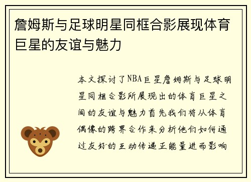 在世界体育的舞台上,温布尔登网球锦标赛(简称“温网”)以其悠久的历史和独特的魅力吸引了无数运动员和观众。近年来,足球明星们逐渐成为温网赛场上的常客,他们不仅在自己的领域内表现出色,还展现出跨界魅力,让人们看到了不同运动之间的精彩互动。本文将从四个方面探讨温网赛场上足球明星的精彩瞬间与跨界魅力,分别为:足球明星与网球赛事的亲密关系、他们在比赛中的激情时刻、对年轻运动员的积极影响以及跨界合作中的创意表...